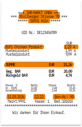 Einfach Kassenbon hochladen, die nachfolgenden Felder
